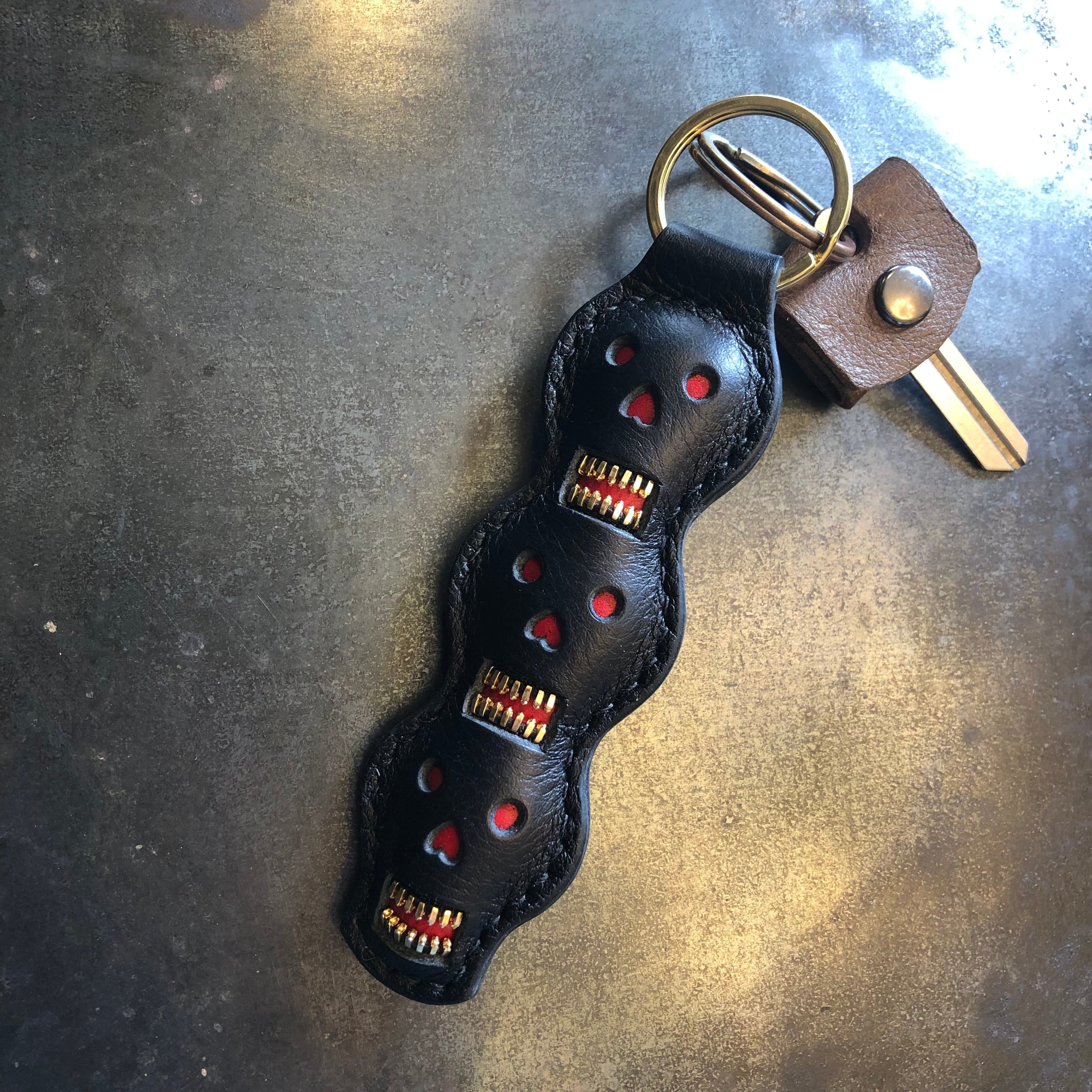 トーテムポールガイコツキーリング ブラック×レッド